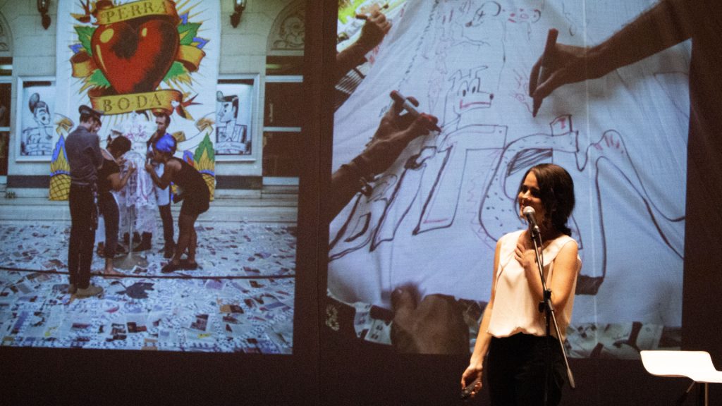 Giselle cierra su presentación con una última anécdota, esta última historia que nos comparte la cubana era sobre el desarrollo de su boda, el evento fue ejecutado por los amigos de la pareja, entre ellos se encontraban personas del taller de impresión y del teatro, los cuales fueron responsables de todo el concepto gráfico de la boda, hasta del vestido de novia de Giselle y la presentación de los regalos. La planeación de la celebración desde un inicio fue un proyecto de diseño.