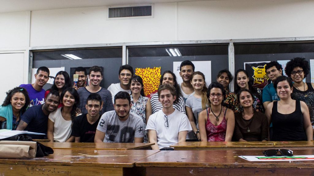 El taller de Gisselle consistió en crear un cartel a la manera cubana, con limitaciones en cuanto a herramientas y disponibilidad de insumos pero con mucha creatividad y un gran manejo de las formas y la composición. Los participantes al taller comenzaban generando una lluvia de ideas de palabras que pudieran representar a Cali, se procedía a repartir esas palabras de forma aleatoria a duplas de estudiantes, quienes las usaron como conceptos generadores para crear un cartel en un cuarto de pliego de papel, con insumos y herramientas limitadas. Debían a través de las formas básicas, la composición y el uso de 3 colores como máximo crear un cartel que mostrara la esencia de Cali.