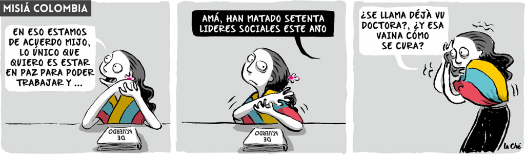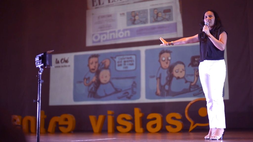La Ché, es una viñetista, humorista política e ilustradora reconocida en toda habla hispana no solo por su humor único, sino también por su compromiso con temas sociales como la diversidad y la inclusión. La conferencia de ella está conformada por cuatro capítulos que ella título como: El goce de hacer, Perder el miedo, Compromiso y Felicidad, en los que nos narra aspectos de su vida cotidiana, los cuales son reflejados en su trabajo y obras personales. Cecilia comienza su presentación relatando sobre su primer trabajo profesional, el cual era ilustrar el libro “Hernando Tejada” y en donde tardó tres años de completar, durante ese tiempo ella formó una amistad con Hernando, además, lo considera como una inspiración y gran influencia. En el 2004 ella consigue graduarse de la Universidad del Valle, simultáneamente, tiene a su primer bebé, cuyo nacimiento ayudó a Cecilia decidirse trabajar como freelancer una vez saliendo de la universidad.